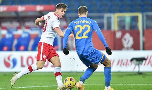 Ближе к окончанию первой половины встречи команды обменялись заработанными стандартами, однако не сумели извлечь из них никакой пользы. Зато удалось забить с игры – сделали это хозяева. Лунин допустил грубую ошибку, опрометчиво выйдя из ворот и подарив мяч Зьелински. Петр поделился им с Пьонтеком, а нападающий послал мяч в пустые ворота – 1:0. В оставшиеся минуты Украина не нашла, чем ответить сопернику, посему отправилась отдыхать, уступая в счете.