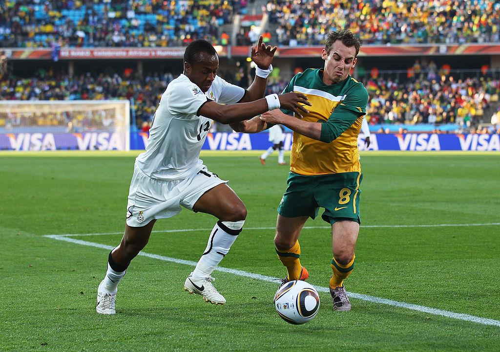 Австралия забила первой, но виноваты были не молодые центральные защитники. Обычно надежный Кингсон с капитанской повязкой на руке парировал удар издали прямо перед собой, и австралиец Бретт Холман добил мяч в ворота. Возможно, дело в Джабулани — очень непредсказуемом мяче того турнира. Может быть, дело в том, что Кингсон не сыграл ни разу за Уиган в минувшем сезоне. В любом случае, пропущенный гол поставил Гану в непростое положение.