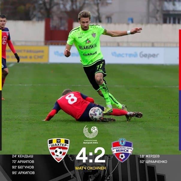 Шахтёр (С) – Минск 4:2 (Кендыш, 24, Архипов, 72, 90+7 Бегунов, 90+2 — Жердев, 18, Шрамченко, 52)
