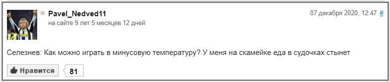 ⚡Нападающий Колоса Евгений Селезнев заявил, что недоволен решением проводить поединки чемпионата в плохих погодных условиях: "Как можно играть в минусовую температуру? Это антифутбол".