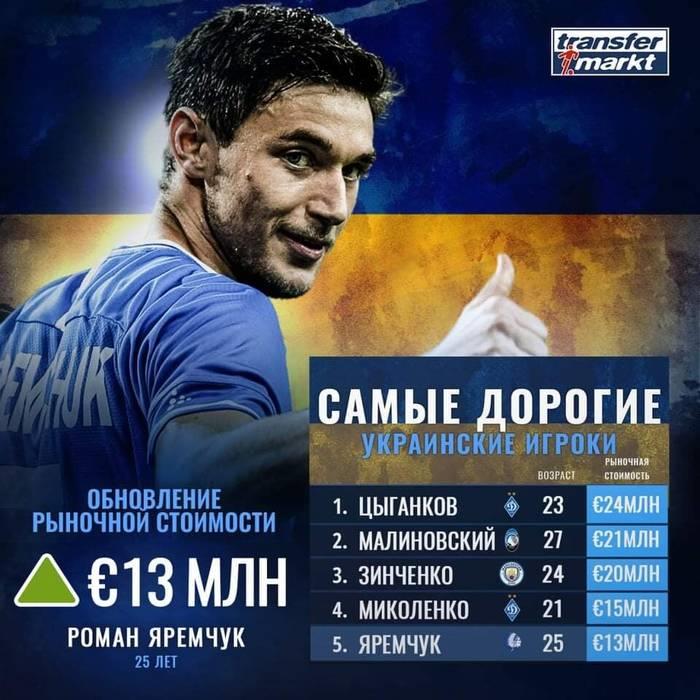 Так цена на форварда Гента Романа Яремчука выросла на два миллиона евро. Он продолжает входить в топ-5 самых дорогих украинских футболистов.