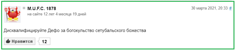 Пользователь M.U.F.C. 1878 получил бан за расизм по отношению к Дефо😉