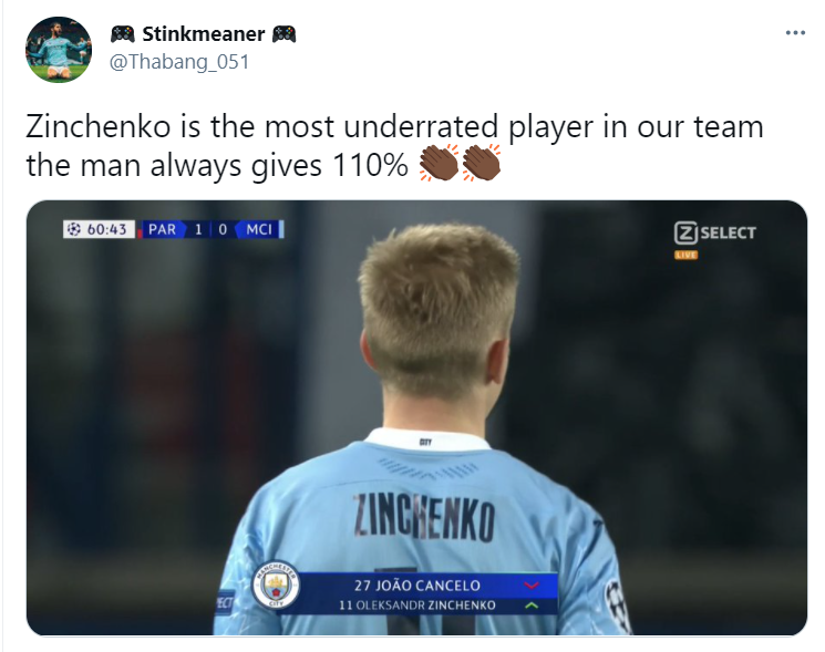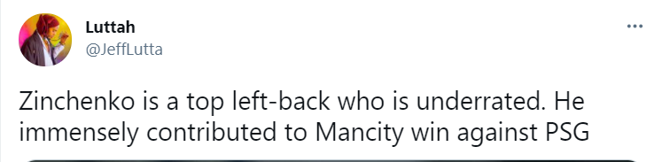 "Зинченко — левый защитник, которого недооценивают. Он внес отличный вклад в победу над ПСЖ".
