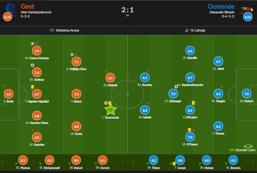 Напомним, что ранее Роман Яремчук стал лучшим игроком матча Зюлте-Варегем — Гент по версии WhoScored.