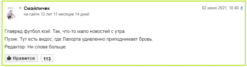 Уже традиционно мы продолжаем открывать новую неделю развлекательной рубрикой о лучших комментариях прошедших семи дней по мнению нашей редакции. Интересных событий в мире футбола за минувшую неделю было предостаточно, поэтому сразу хочется извиниться перед авторами других смешных комментариев, которые по определенным причинам не попали в сегодняшний обзор. Мониторинг всех ваших реакций на ту или иную новость, даже за такой незначительный период, занимает большое количество времени. Именно поэтому нет возможности увидеть все ваши комментарии. Желаем вам приятного чтения, прекрасного настроения и продуктивной недели!