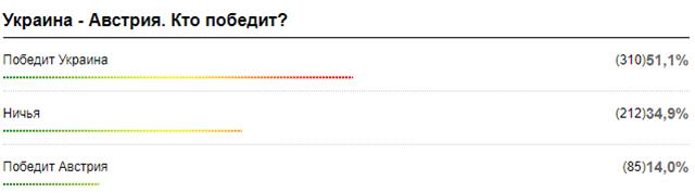 Представляем вашему вниманию результаты опроса, по итогам которого как минимум половина пользователей верит в победу сборной Украины (51,1%):