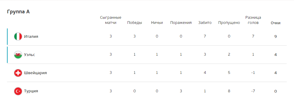 Команды первого квартета уже сыграли все свои матчи в рамках группового этапа. Сборные Италии и Уэльса, занявшие первое и второе места соответственно, уже готовятся к раунду плей-офф Евро-2020, а вот судьба Швейцарии на турнире, как и сейчас Украины, ранее зависела от результатов других поединков.