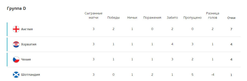 Последние матчи группы D между Чехией и Англией, а также Хорватией и Шотландией состоялись 22 июня. Благодаря минимальной победе над чехами подопечные Гарета Саутгейта финишировали на первой строчке, однако украинскую команду в первую очередь интересовал результат другого поединка.