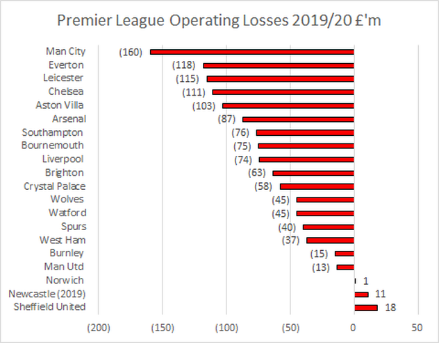 Клубы английской Премьер-лиги за тот футбольный год показали устрашающие 1,4 млрд евро убытков. При этом, сумма не включала показатели Ньюкасла, руководитель которого, Майк Эшли, попросту не стал публиковать финансовый отчет за период карантина.