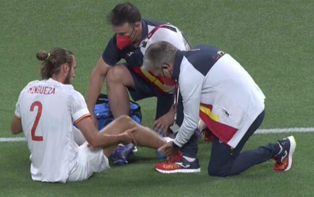 Номинально центральный защитник каталонской Барселоны Оскар Мингеса, которого Луис де ла Фуэнте принял решение заиграть на правом фланге обороны, получил повреждение голеностопа правой ноги на 19-й минуте, в результате чего был заменен на Хесуса Вальехо.