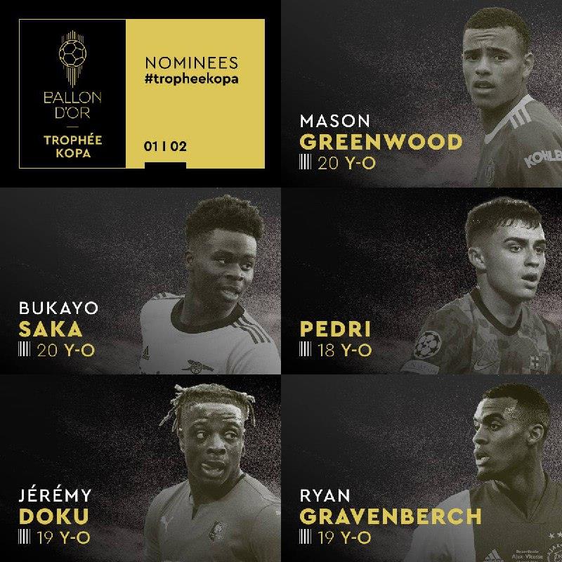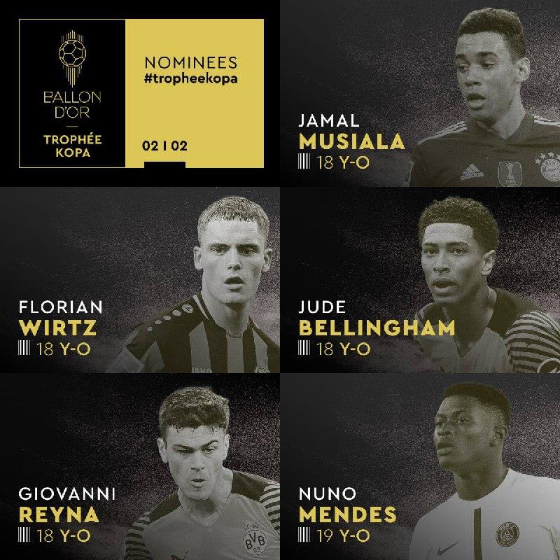 France Football опубликовал список претендентов на Золотой мяч до 21 года.