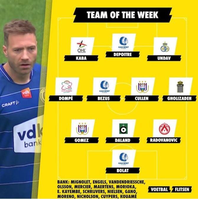 Украинский полузащитник Гента Роман Безус попал в символическую сборную минувшего 12 тура бельгийского чемпионата по версиям изданий VP, Sport/Foot Magazine и Voetbal Flitsen.