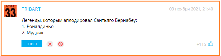 Но перед тем, как приступить непосредственно к вашим перлам прошлой недели, мы продолжаем отмечать самых активных наших пользователей. На этот раз символическую медаль нашего сайта получает пользователь Дмитрий1993, который с нами уже более 13 лет и за это время сумел написать более 177 тысяч комментариев, что является безоговорочным рекордом среди всех читателей Football.ua! Стоит также отметить, что благодаря Дмитрию1993 у редакции теперь есть список самых активных пользователей сайта, за что, конечно, ему огромное спасибо!