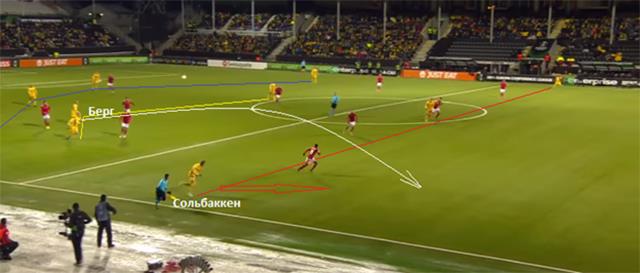 В плане своевременных открываний нужно выделить правого вингера. Сольбаккен владеет хорошим таймингом, стартовой скоростью и дриблингом.