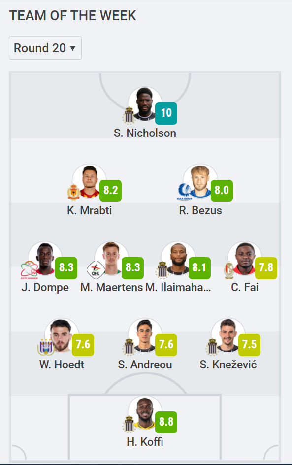 Полузащитник сборной Украины и Гента Роман Безус попал в символическую команду недели по итогам 20 тура чемпионата Бельгии.