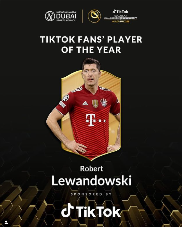 Лучший игрок 2021 года среди пользователей TikTok — Роберт Левандовски (Бавария).