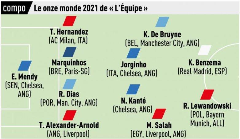 Авторитетный журнал L’Équipe опубликовал символическую сборную лучших футболистов по итогам 2021 года.
