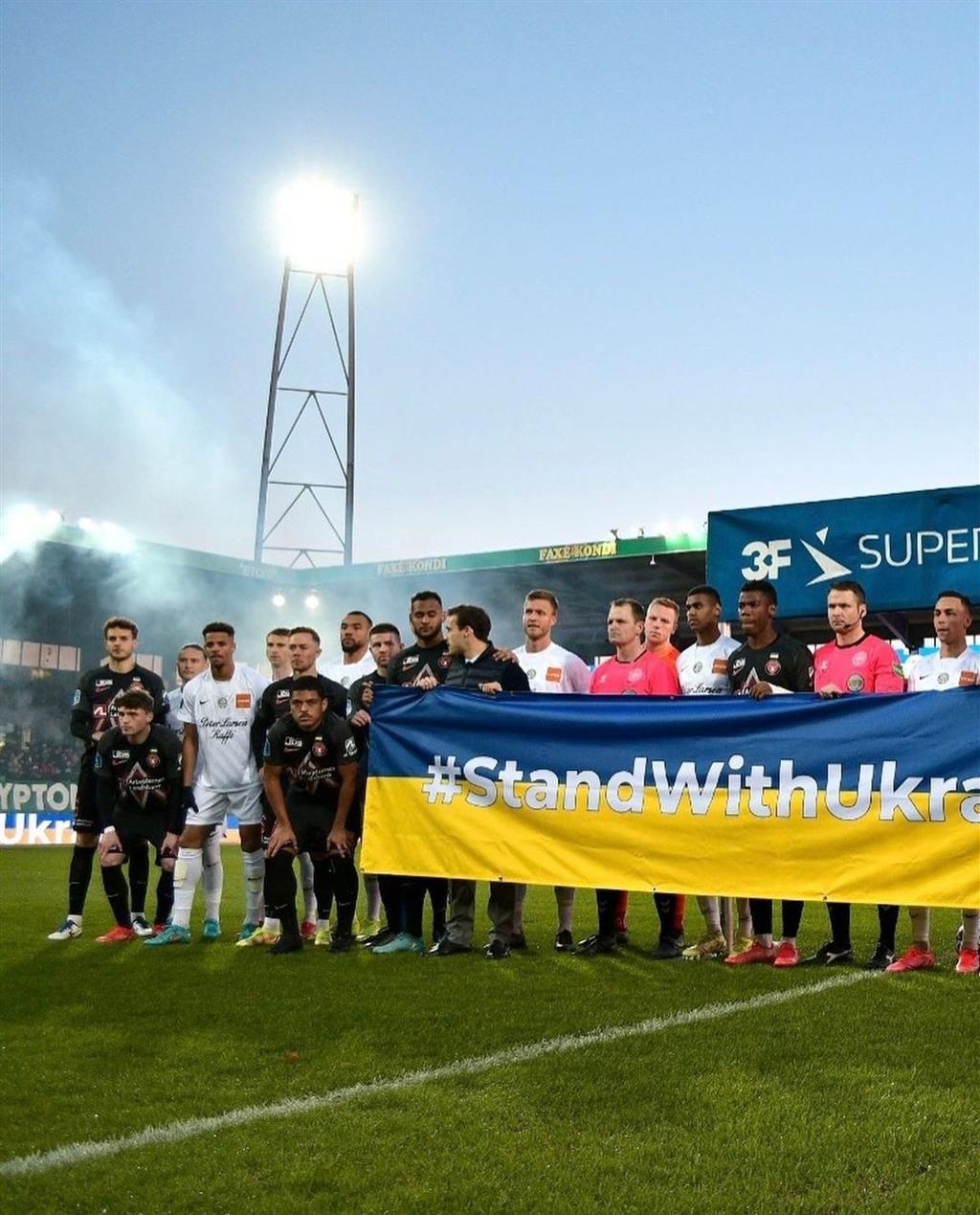 Також футболісти обох клубів сфотографувалися перед грою із банером "Ми з Україною".