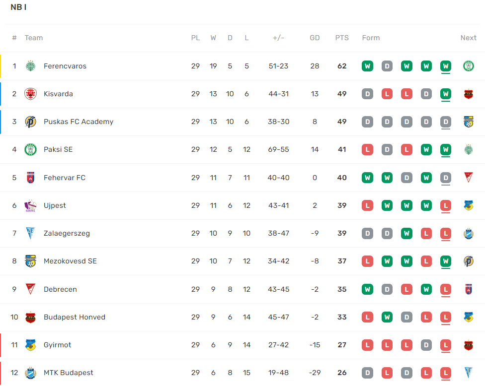 У рамках 29 туру чемпіонату Угорщини Ференцварош обіграв Уйпешт з рахунком 2:1 і достроково став чемпіоном за підсумками сезону-2021/22.