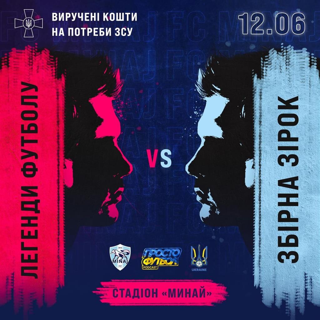 🗓 12 червня відомі блогери, медійні особи та легенди українського футболу проведуть благодійний матч на стадіоні ФК Минай. Всі зібрані кошти з продажу тікетів-донатів будуть передані на термінові потреби Збройних сил України!