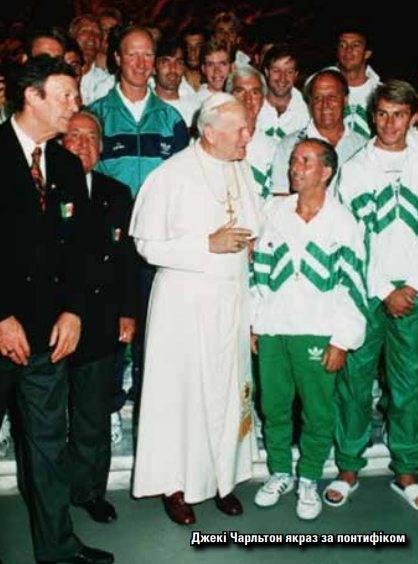 Звичайно, Кароль Войтила в доступній йому мірі зберігав дитячу пристрасть до футболу, тим більше йому за обов'язком служби доводилося приймати різні футбольні команди – як клуби, так і збірні. Добре відома історія, як напередодні чвертьфіналу ЧС-90 у Ватикані побувала збірна Ірландії, а наступного дня її досвідчений воротар Пат Дженнінгс припустився грубої помилки в матчі з італійцями. Тоді головний тренер айрішів, англієць Джекі Чарльтон, не втримався і пробурчав: «Папа Римський точно взяв би цей м'яч – кажуть, він був непоганим кіпером!»