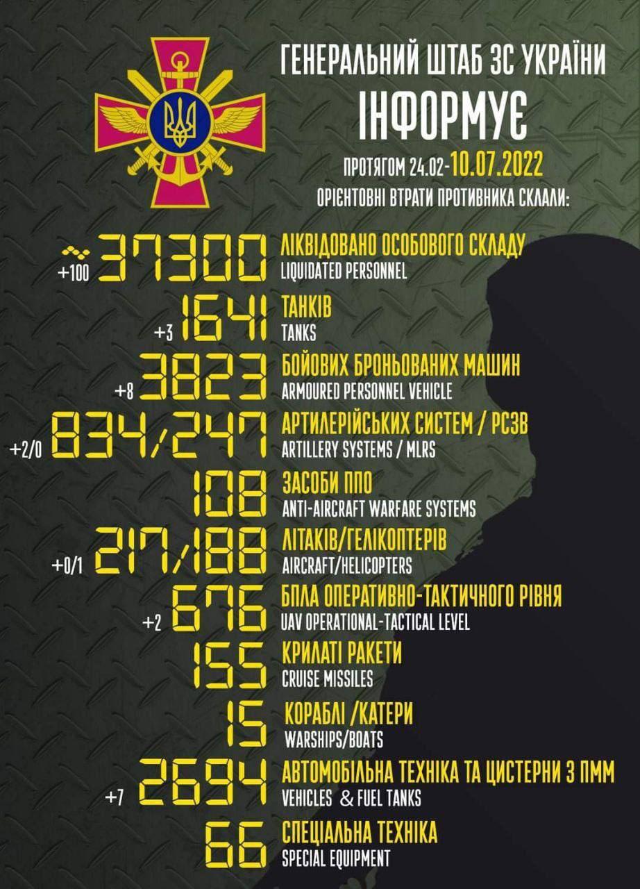 До вашої уваги інформація щодо російського вторгнення в Україну за підсумками 10 липня.