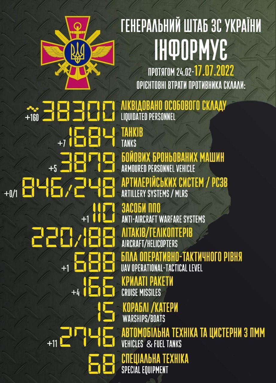 До вашої уваги інформація щодо російського вторгнення в Україну за підсумками 17 липня.