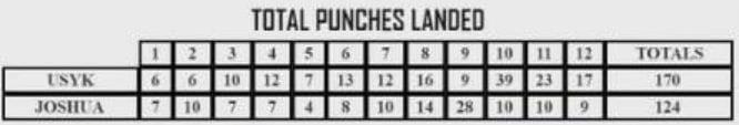 Боксери провели в рингу всі відведені 12 раундів, і рішення по переможцю визначали судді. Один з рефері віддав перевагу Джошуа, тоді як два інших віддали перемогу Усику (115:113, 113:115, 116:112).