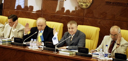 Сегодня состоялась пресс-конференция президента ФФУ Григория Суркиса и вице-премьера по гуманитарным вопросам Ивана Васюника, посвященная "разбору полетов" по итогам Конгресса УЕФА в Бордо.