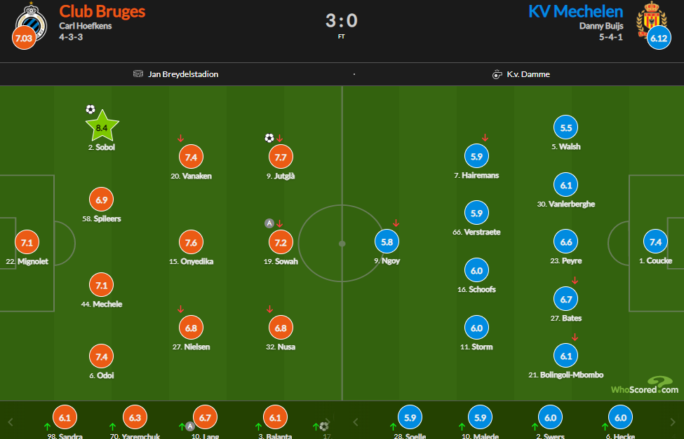 За версією статистичних порталів саме український захисник Брюгге Едуард Соболь став найкращим гравцем матчу.