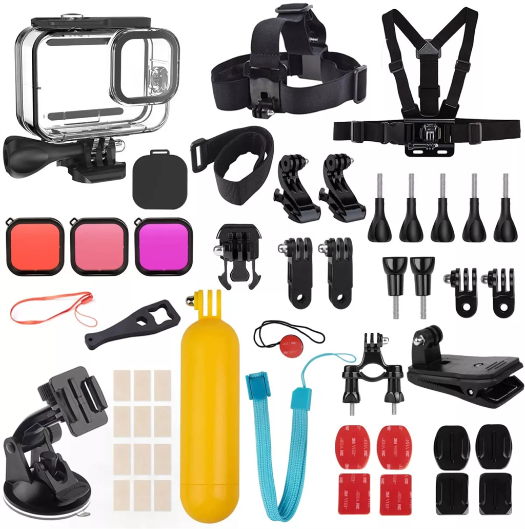 Бюджетний комплект спортивної камери SmilePowo 51-в-1 містить усі інструменти, необхідні для використання GoPro у беккантрі, у дорозі та над морем. За ваші гроші ви отримаєте ремінець для зап'ястя, що обертається на 360 градусів, автомобільну присоску, кріплення для головного ременя, подовжувач, нагрудне кріплення, штатив, рукоятку з плаваючою ручкою, палицю для селфі, затискні кріплення для вашого велосипеда, безліч ременів, тонну адаптер ключ і гвинти, а також всі клейкі прокладки, які вам коли-небудь знадобляться. Все міститься в пінопластовий чохол. Якщо ви не впевнені, що вам потрібно, але хочете покрити всі свої бази, використовуйте цей комплект.