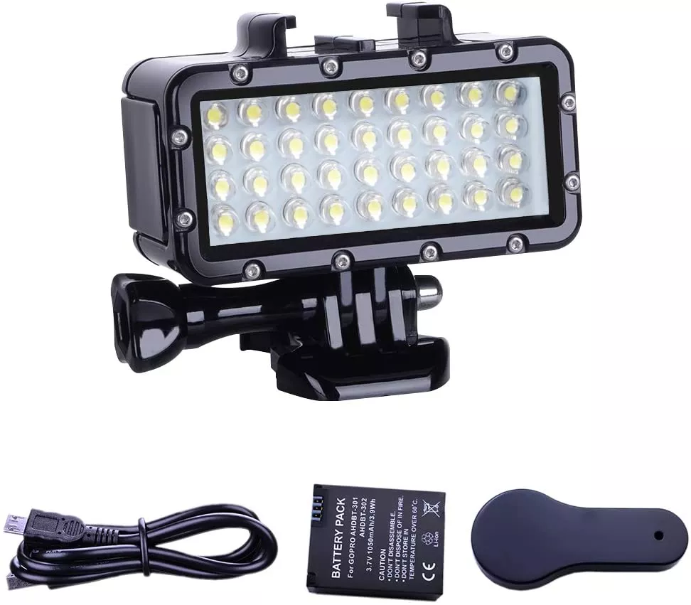 Ви отримаєте більш чіткі кадри та яскравіші зображення з комплектом освітлення для дайвінгу Suptig. Він водонепроникний, з регульованою яскравістю і служить світлодіодним відеосвітлом або заповнюючим світлом в нічний час. Ви можете використовувати його на глибині до 45 метрів, і він сумісний з усіма GoPro та багатьма іншими екшн-камерами. Цей комплект включає водонепроникний ліхтар, акумуляторну батарею, кріплення і кабель для зарядки. Якщо ви пірнаєте, це потреба.