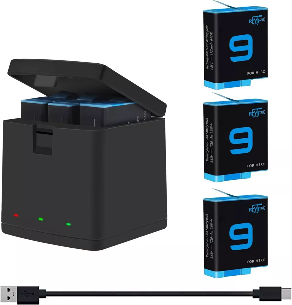 Ви більше ніколи не турбуватиметеся про живлення завдяки змінній батареї REYTRIC HERO9 з 3 комплектів. REYTRIC пропонує вам три акумулятори, що перезаряджаються, ємністю 1720 мАч, які потроять час роботи вашої камери, а також компактний зарядний пристрій і зарядний кабель. Якщо ви розраховуєте, що GoPro HERO9 допоможе вам подолати дистанцію, киньте її в кошик прямо зараз.