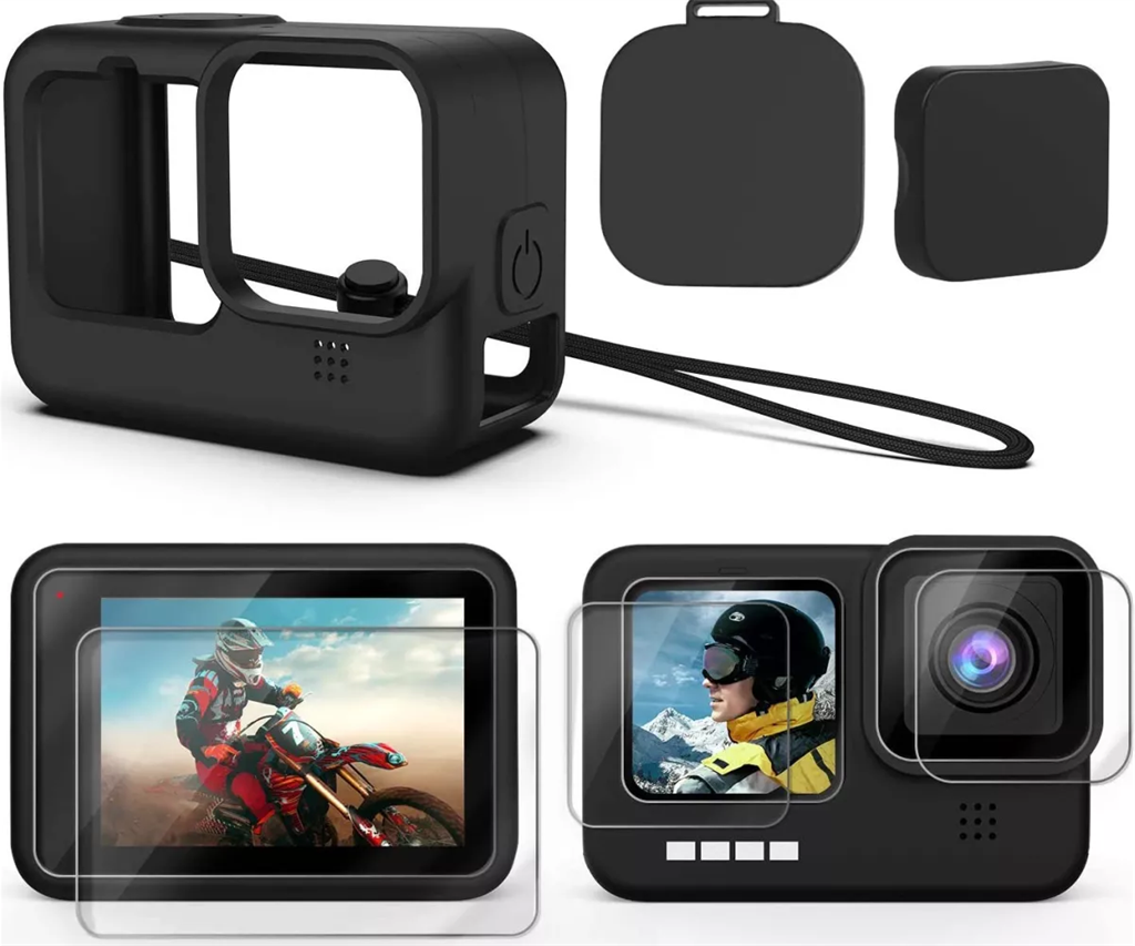 Ваша GoPro призначена для використання у будь-яку погоду та в будь-якій ситуації. Ви не хочете турбуватися про те, щоб подряпати дисплей, лінзу або подряпати корпус. Додайте цей комплект від Deyard до своєї сумки, і ваші турботи зникнуть. Deyard включає силіконовий чохол, який підходить для GoPro HERO9 і захищає від ударів і падінь, а також гумову кришку кришки об'єктива і шість захисних плівок для екрану із загартованого скла.