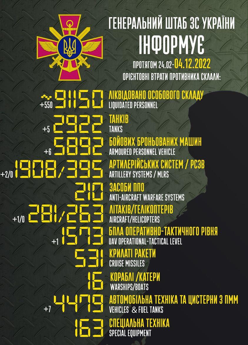 До вашої уваги інформація щодо російського вторгнення в Україну за підсумками 4 грудня.