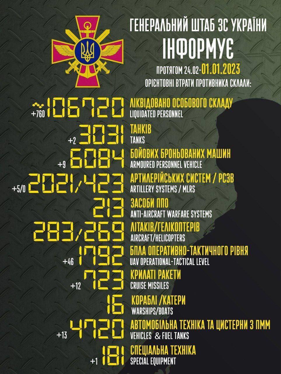 До вашої уваги інформація щодо російського вторгнення в Україну за підсумками 1 січня.