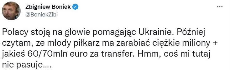 Колишній президент польсьскої федерації футболу Збігнєв Бонєк у своєму Twitter поділився думкою стосовно трансферу Михайла Мудрика з Шахтаря в Челсі.