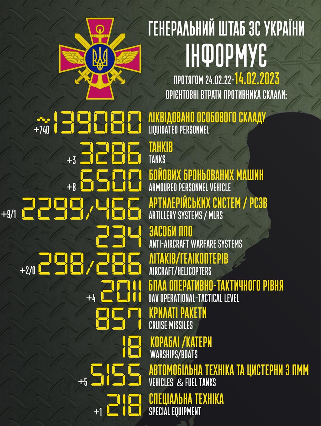До вашої уваги інформація щодо російського вторгнення в Україну за підсумками 14 лютого.
