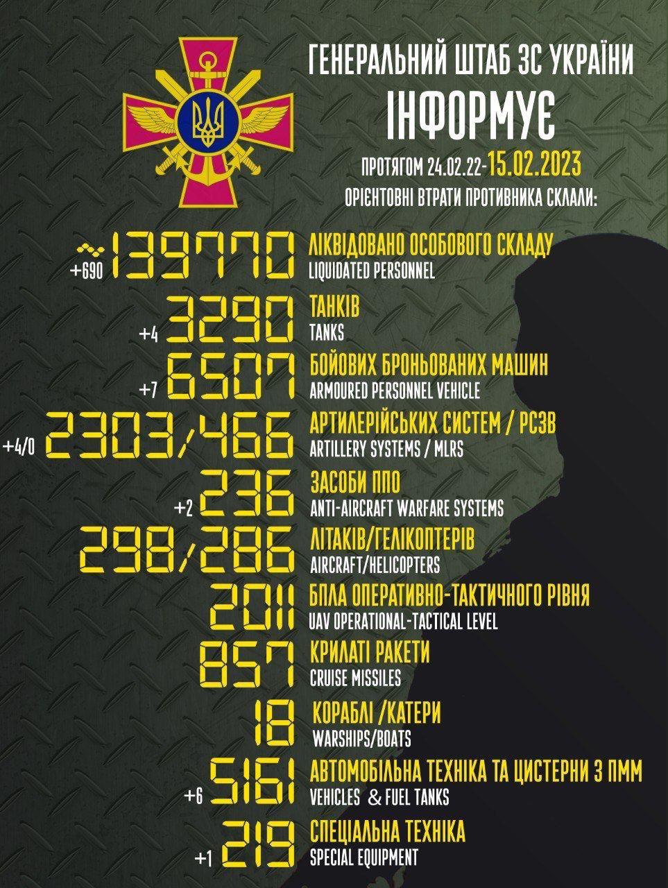 До вашої уваги інформація щодо російського вторгнення в Україну за підсумками 15 лютого.