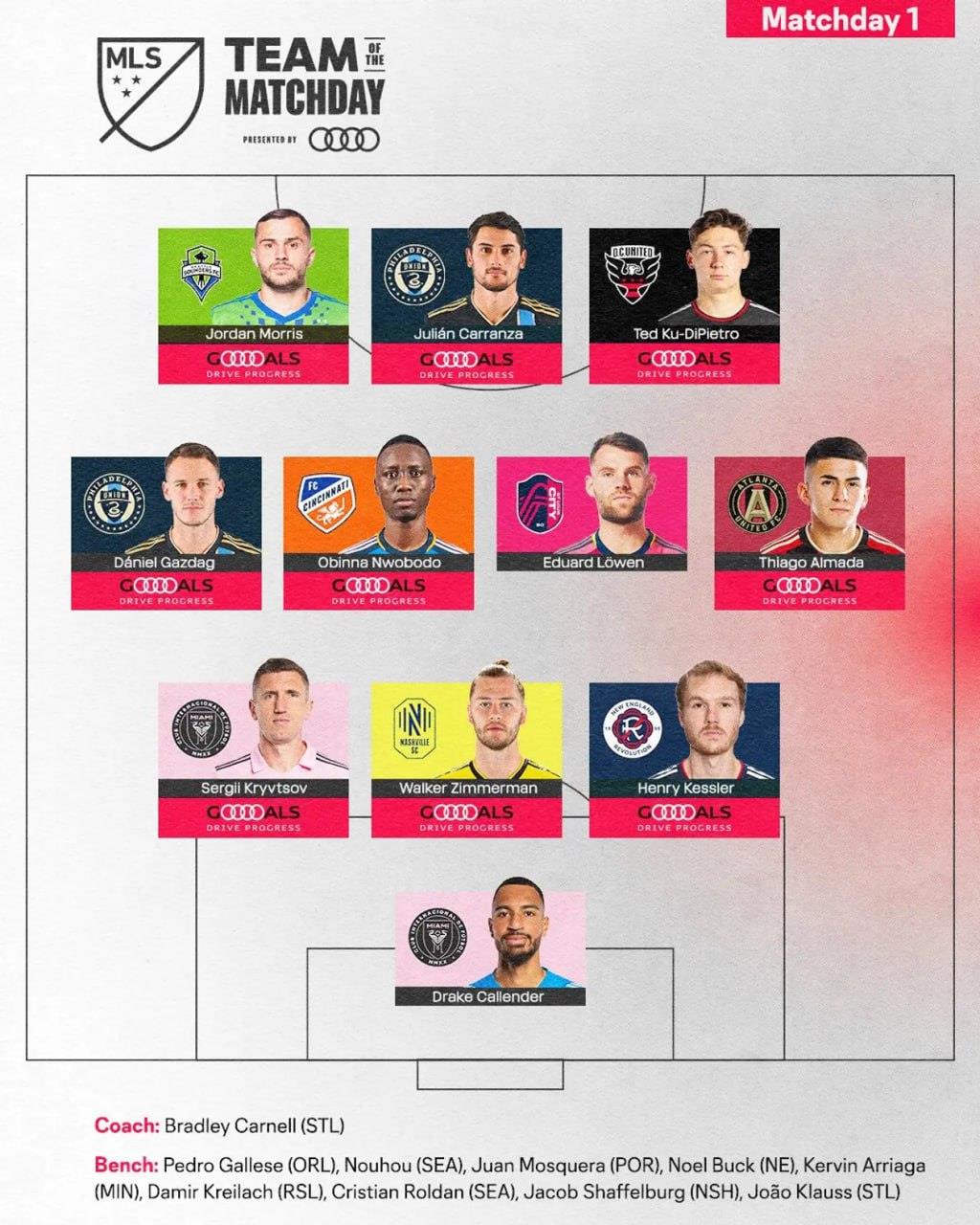 Символічна збірна 1 туру: Дрейк Каллендер (Інтер Маямі) – Сергій Кривцов (Інтер Маямі), Уокер Циммерман (Нешвілл), Генрі Кесслер (Нью Інгленд Революшн) – Даніель Газдаг (Філадельфія Юніон), Обінна Нвободо (Цинциннаті), Едуард Левен (Сіетл Саундерс), Тьяго Алмада (Атланта Юнайтед) – Джордан Морріс (Сіетл Саундерс), Хуліан Карранса (Філадельфія Юніон), Тед Ку-ДіП'єтро (Ді Сі Юнайтед).