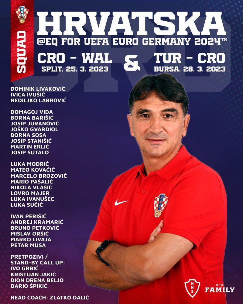 У заявку команди потрапив 37-річний півзахисник Реала Лука Модрич, який поки що не оголошував про завершення міжнародної кар'єри. Він був капітаном команди на ЧС-2022 у Катарі.
