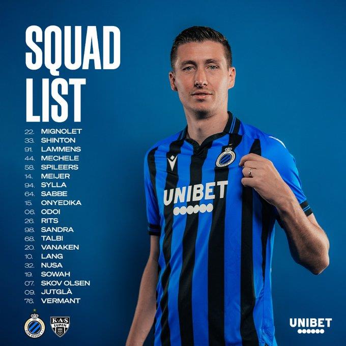 Брюгге у своєму твіттері оголосив заявку на майбутній матч 34 туру чемпіонату Бельгії проти Ейпена.