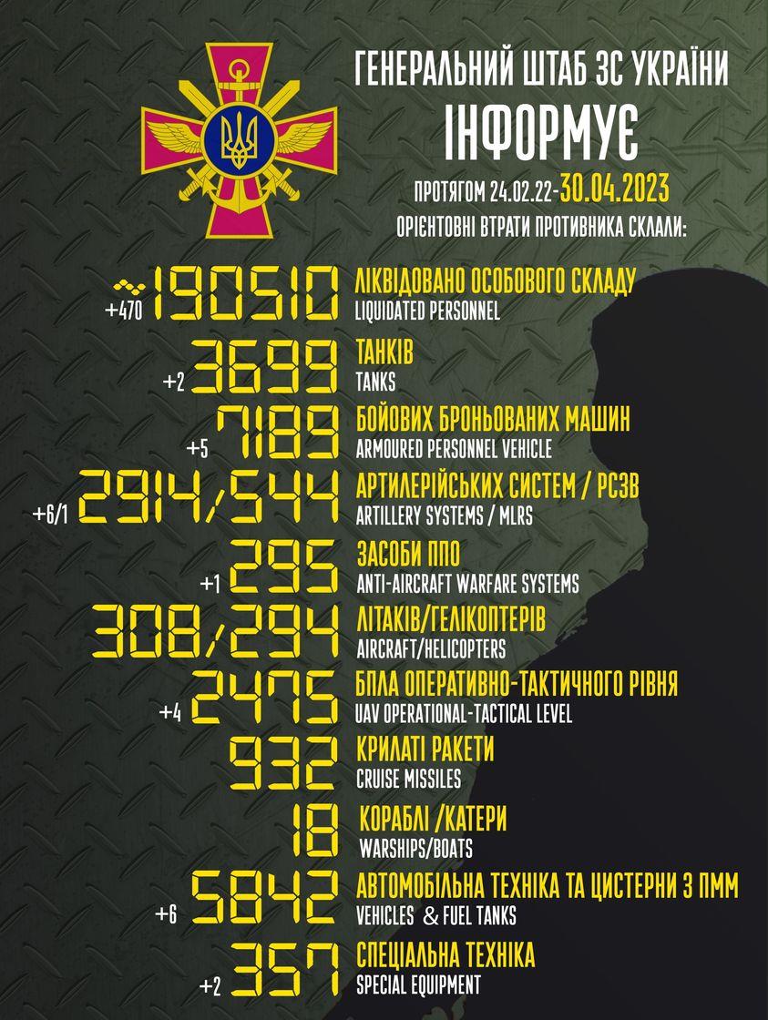 До вашої уваги інформація щодо російського вторгнення в Україну за підсумками 30 квітня.