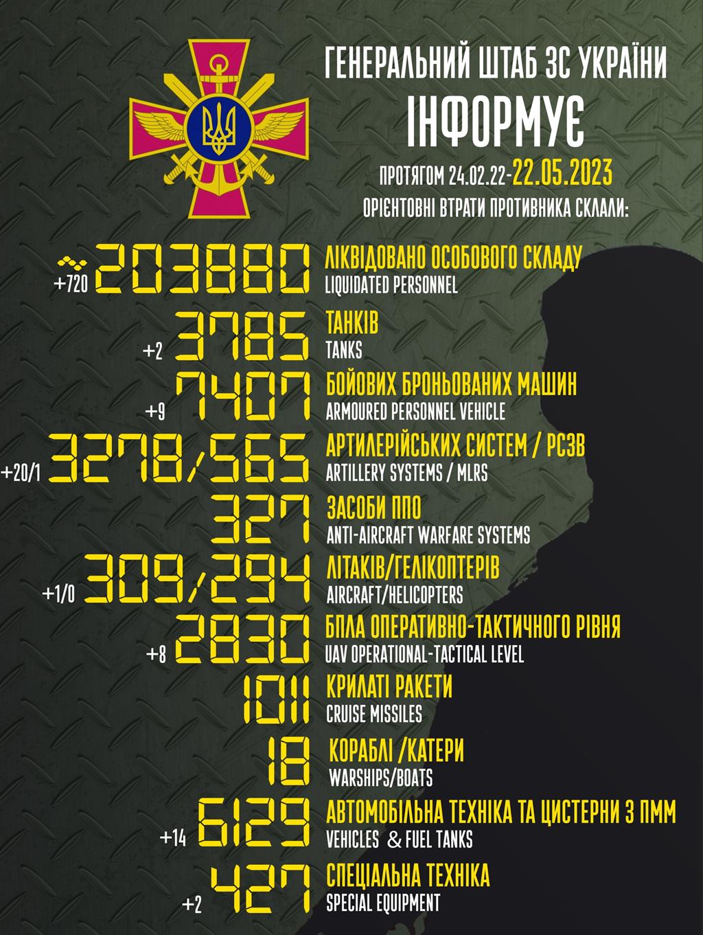 До вашої уваги інформація щодо російського вторгнення в Україну за підсумками 22 травня.