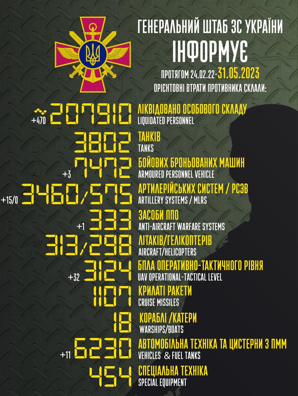 До вашої уваги інформація щодо російського вторгнення в Україну за підсумками 31 травня.