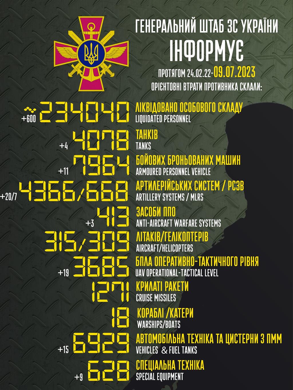До вашої уваги інформація щодо російського вторгнення в Україну за підсумками 9 липня.
