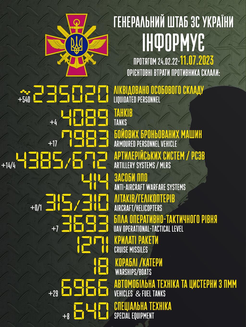 До вашої уваги інформація щодо російського вторгнення в Україну за підсумками 11 липня.