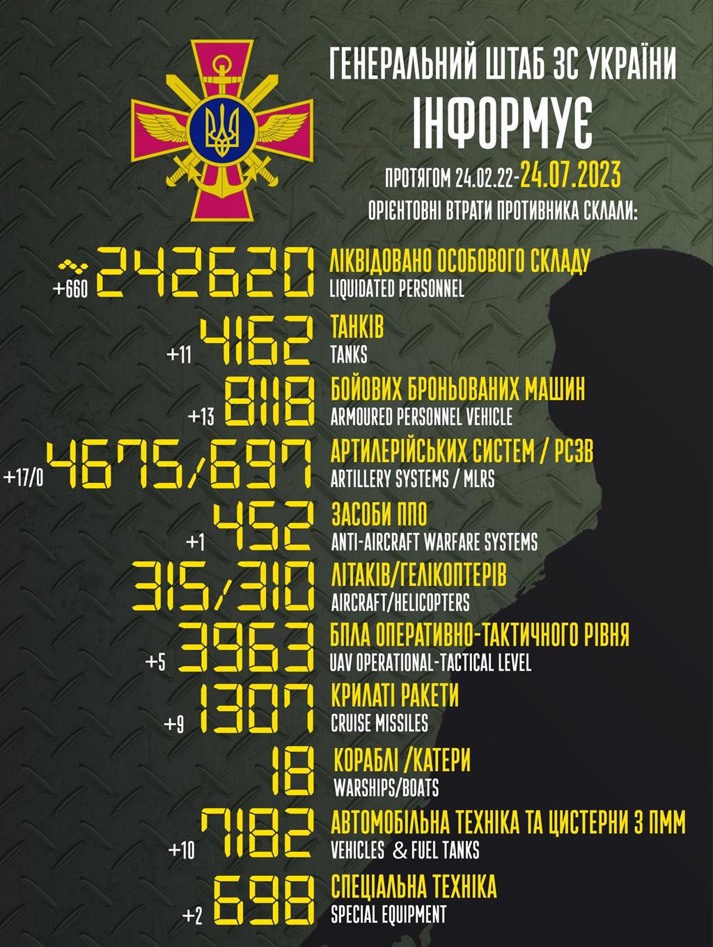 До вашої уваги інформація щодо російського вторгнення в Україну за підсумками 24 липня.