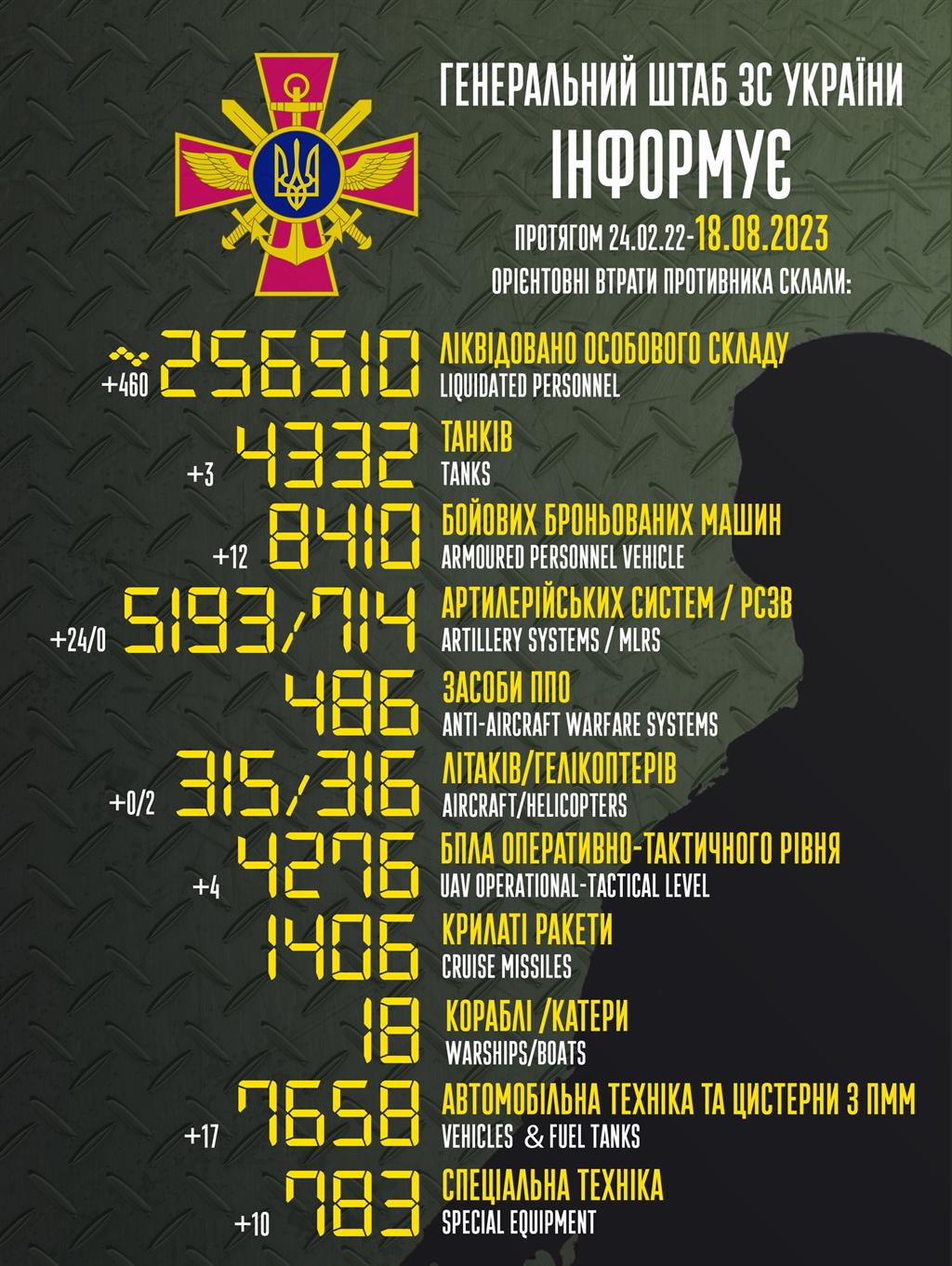 До вашої уваги інформація щодо російського вторгнення в Україну за підсумками 18 серпня.