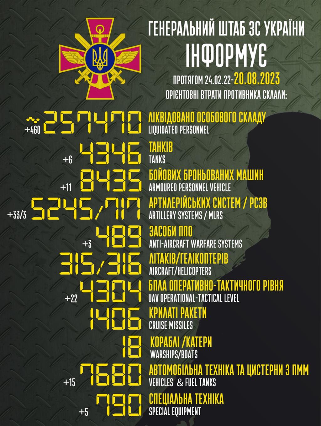 До вашої уваги інформація щодо російського вторгнення в Україну за підсумками 20 серпня.